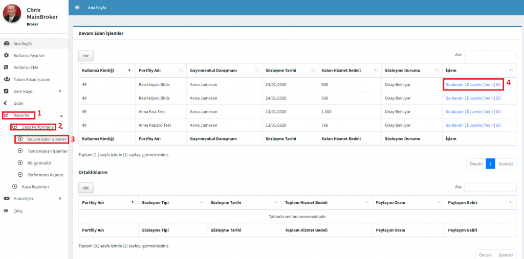 4- Sonlandır/Düzenle/İndir/Sil seçeneklerinden biri seçilir.