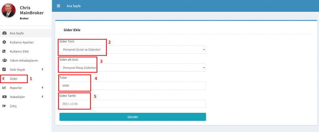 5- Danışmanın toplam gelirleri gözlemlenir.
