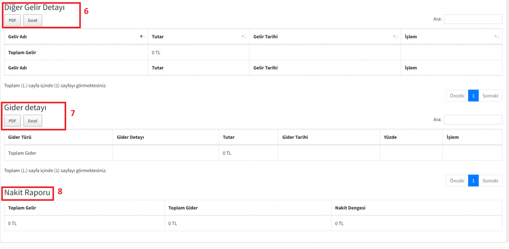 7- Seçilen filtrelemenin diğer gider raporu, pdf ve excel çıktısı alınabilir.