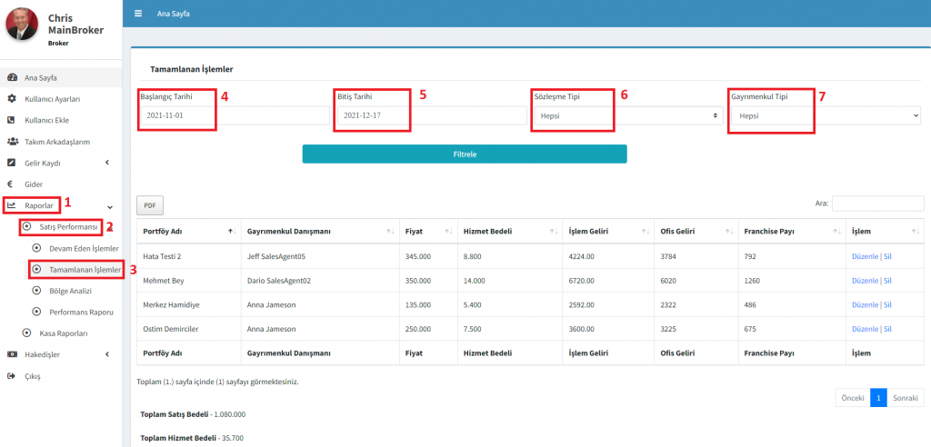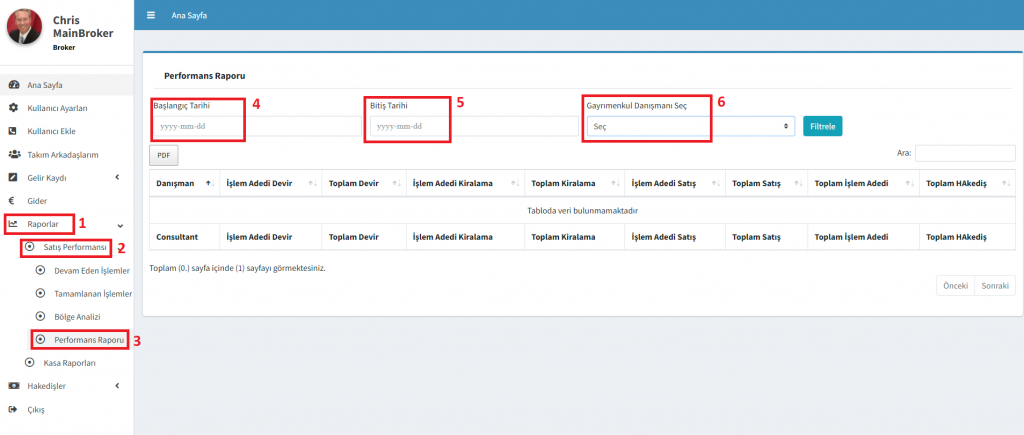 – İlgili danışmanın seçilen tarihler arasındaki işlemleri gözlemlenir.