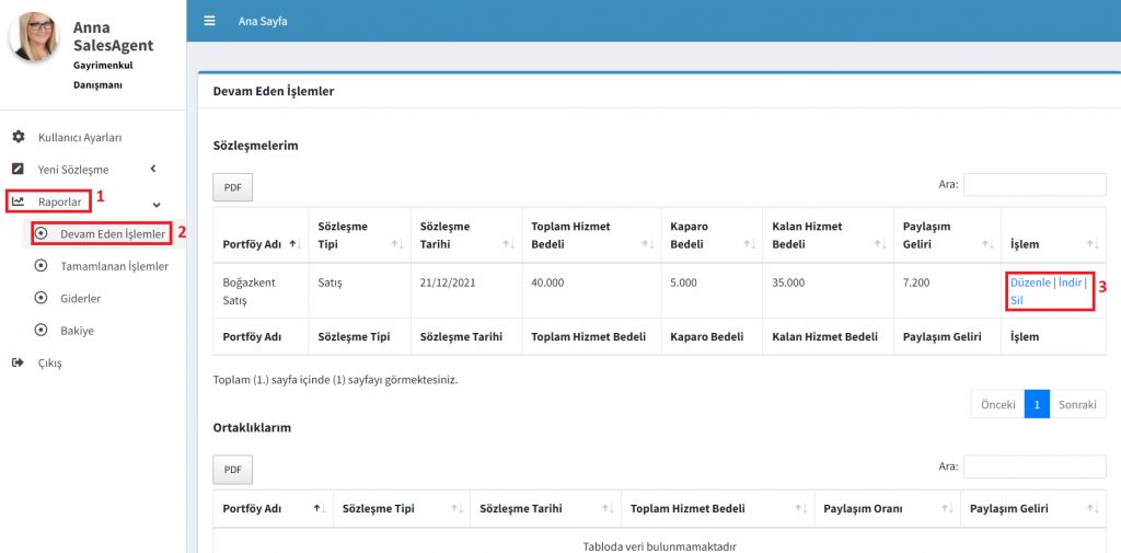 – Ortaklık oranı, sözleşmeyi hazırlayan danışmanın alacağı oran üzerinden hesaplanır. Örnek: 1 ortak ile çalışılıyor ise sözleşmeyi hazırlayan danışman %60 komisyon alıyorsa ortak danışman oranına %30 yazılarak pay yarıya bölünür.