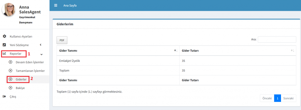3- Giderlerim alanında adınıza olan giderleri görebilirsiniz.